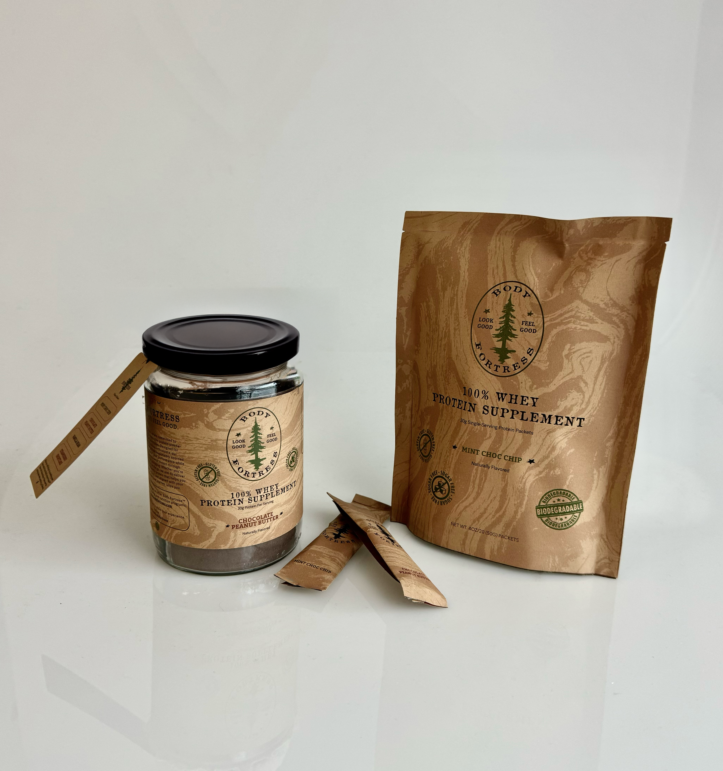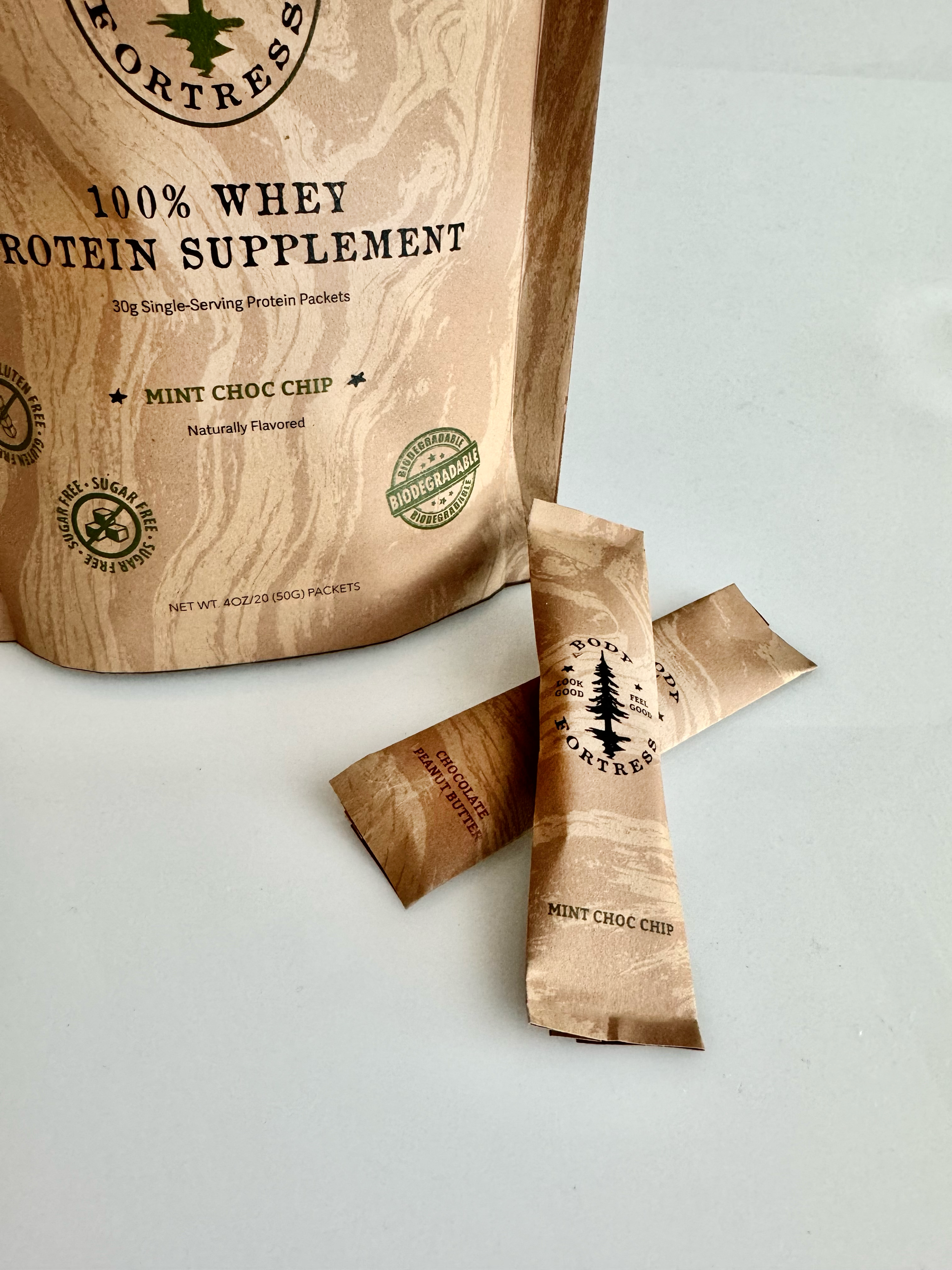 Body Fortress has a new look and a new purpose. Previously geared towards “gym bros”, the rebrand is now catered to an outdoorsman crowd. Using biodegradable single-use sachets made of seed paper, a reusable jar with a changeable flavor card, this brand has a priority of building your fortress while protecting it as well.